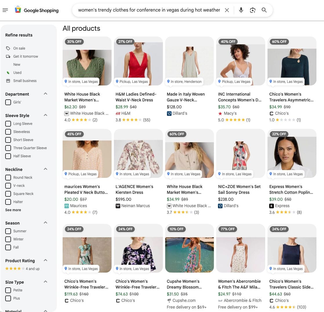 True Story. I was searching for "women's trendy clothes for a conference in vegas during hot weather" for ShopTalk. Want to guess what showed up in my top 12 results? A pair of INC pajamas from Macy’s....